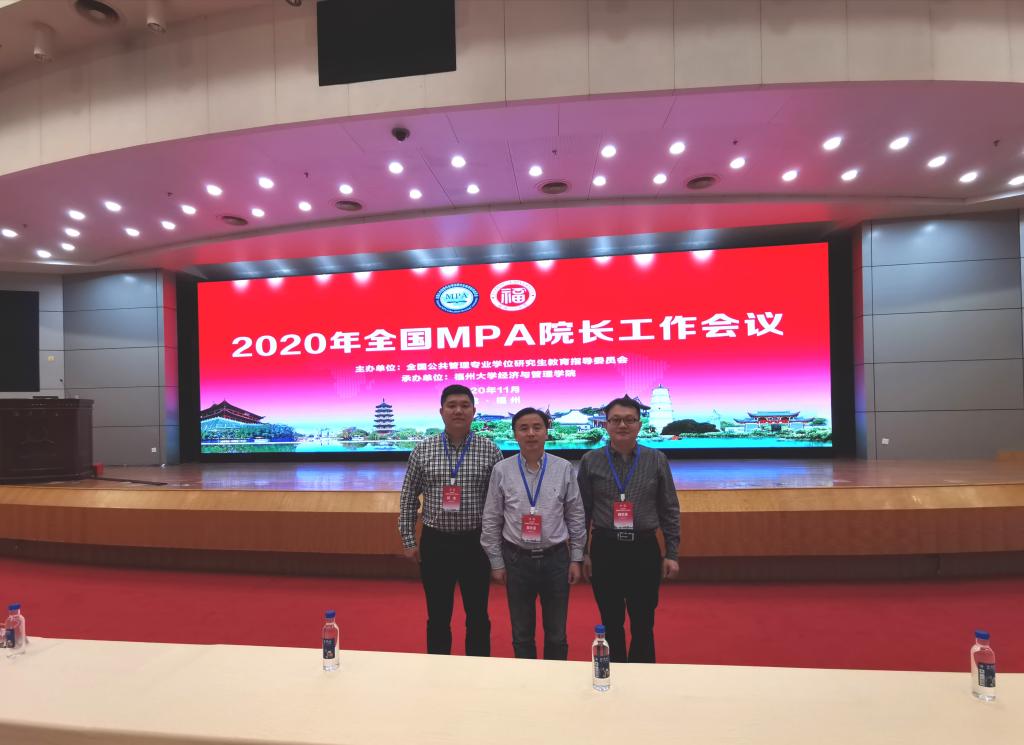 11月4-5日,2020年全国MPA院长工作会议在福州召开,我校MPA教育中心吴价宝、魏范青、颜金三人参加了此次会议。会议由MPA教指委主办、福州大学经济与管理学院承办,第四届MPA教指委委员,以及全国各MPA培养单位参加了此次会议。