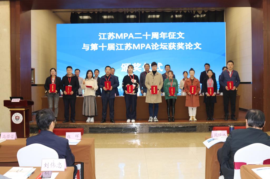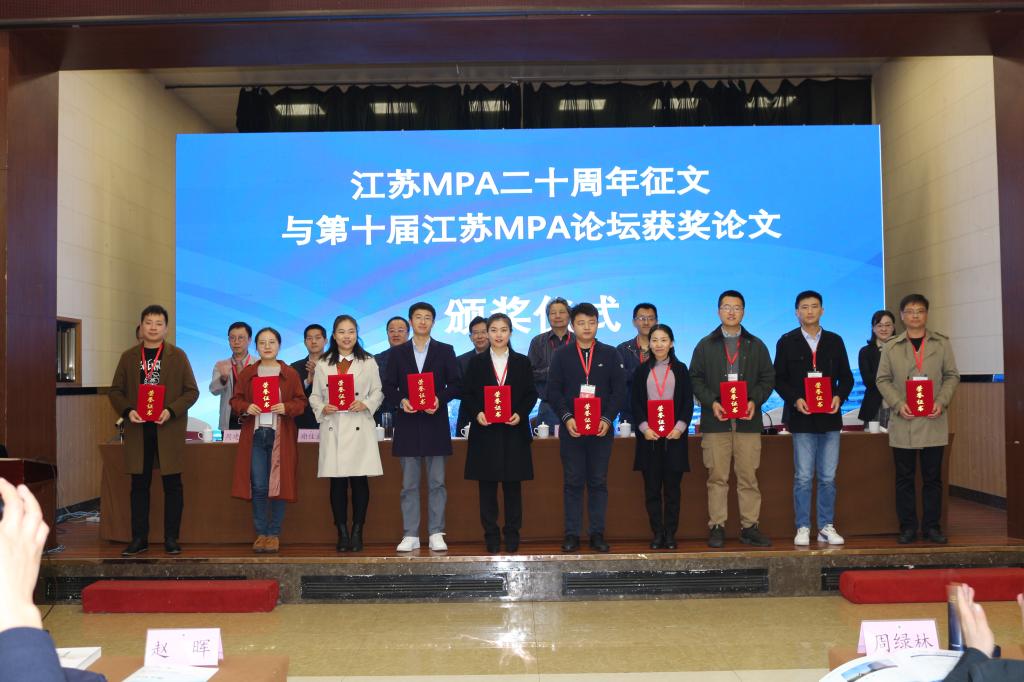 论坛开幕式由江苏师范大学公共管理与社会学院院长郝其宏主持,江苏师范大学党委副书记、副校长刘广登教授、全国MPA教指委秘书处办公室主任谢佳宏发表致辞,全国MPA教指委委员代表复旦大学竺乾威教授、中央民族大学李俊清教授、南京农业大学石晓平教授作主题演讲。随后,由江苏MPA联谊会会长、河海大学公共管理学院院长黄涛珍教授主持了江苏MPA二十周年征文与第十届江苏MPA论坛获奖论文的颁奖仪式,我校MPA学员滕芝、朱峰2名同学分获一、二、等奖。