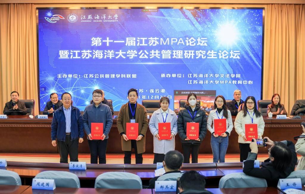 2021年12月26日,由江苏公共管理学科联盟主办,江苏海洋大学文法学院和MPA教育中心承办的第十一届“江苏MPA论坛”暨“江苏海洋大学公共管理研究生论坛”在江苏海洋大学学术会议中心举行。