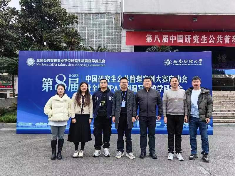 2023年12月2日至4日,由全国公共管理专业学位研究生教育指导委员会主办,西南财经大学公共管理学院承办的第八届中国研究生公共管理案例大赛启动会暨全国 MPA 案例编写与教学研讨会在成都顺利举办。我院MPA教育中心院长颜金、公共管理系主任高锐、公共管理学系郭高晶副教授、公共管理学系孙端副教授及研究生代表殷诚浩、张欣欣、路中旭、张欣妍前往参会。