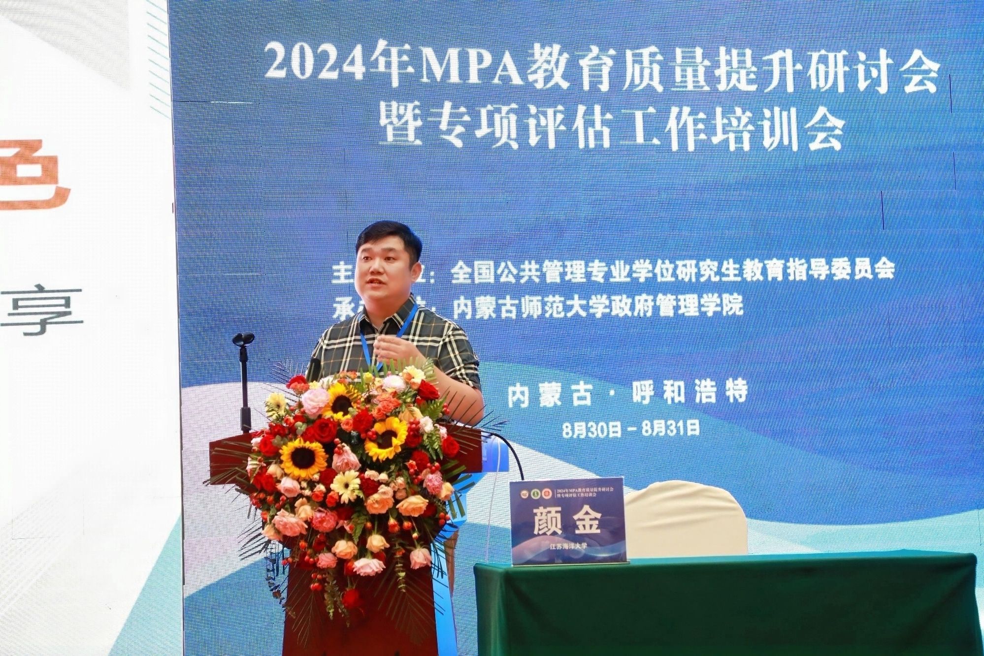 8月30日至31日,由全国MPA教指委主办,内蒙古师范大学政府管理学院承办的“2024年MPA教育质量提升研讨会暨专项评估工作培训会”在呼和浩特市顺利举行。来自全国75所院校的136名MPA培养单位负责人参加了本次会议,我校文法学院副院长颜金老师代表江苏海洋大学在会上作了经验交流发言。