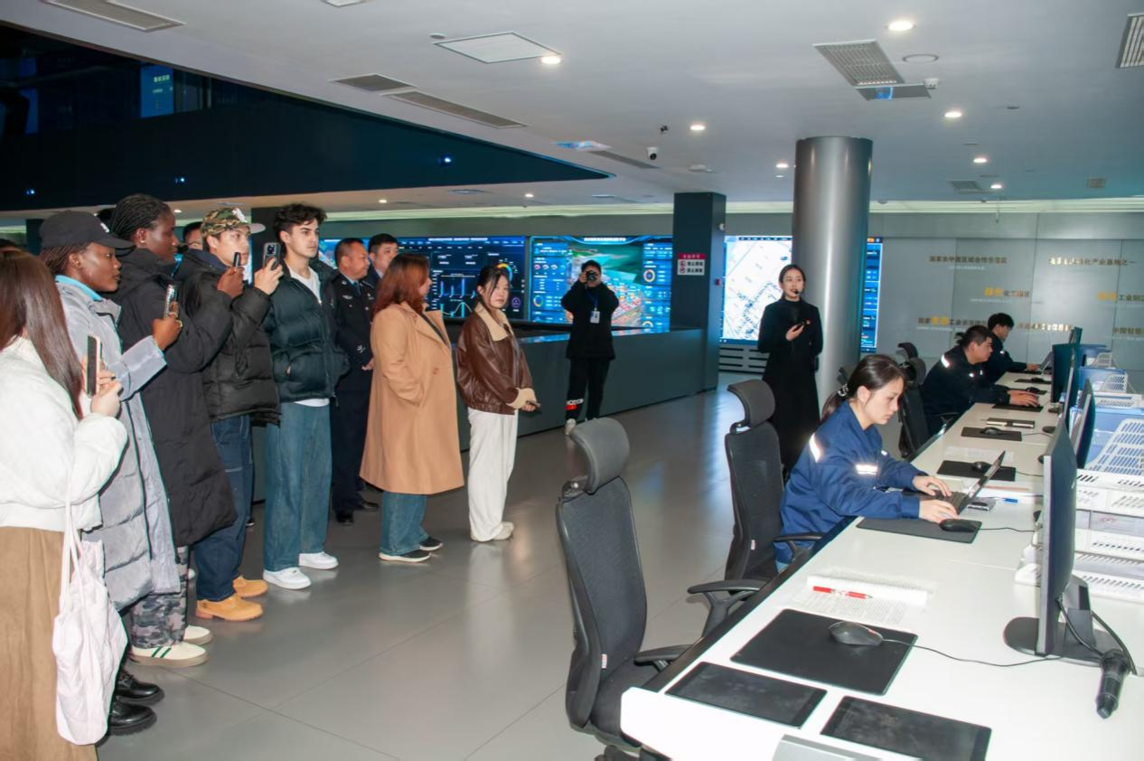 活动伊始,来自江苏海洋大学的留学生们通过开场介绍,初步了解徐圩分局在护航石化产业高质量发展、参与全球公共安全合作中的实践经验。随后,师生一行在连云港石化产业基地运管服务中心参观了徐圩分局服务高质量发展实践点,了解了大数据、人工智能赋能下的智慧警务成果,切身感受到前沿科技如何筑牢重大产业项目的安全防线,推动公共安全治理模式升级。